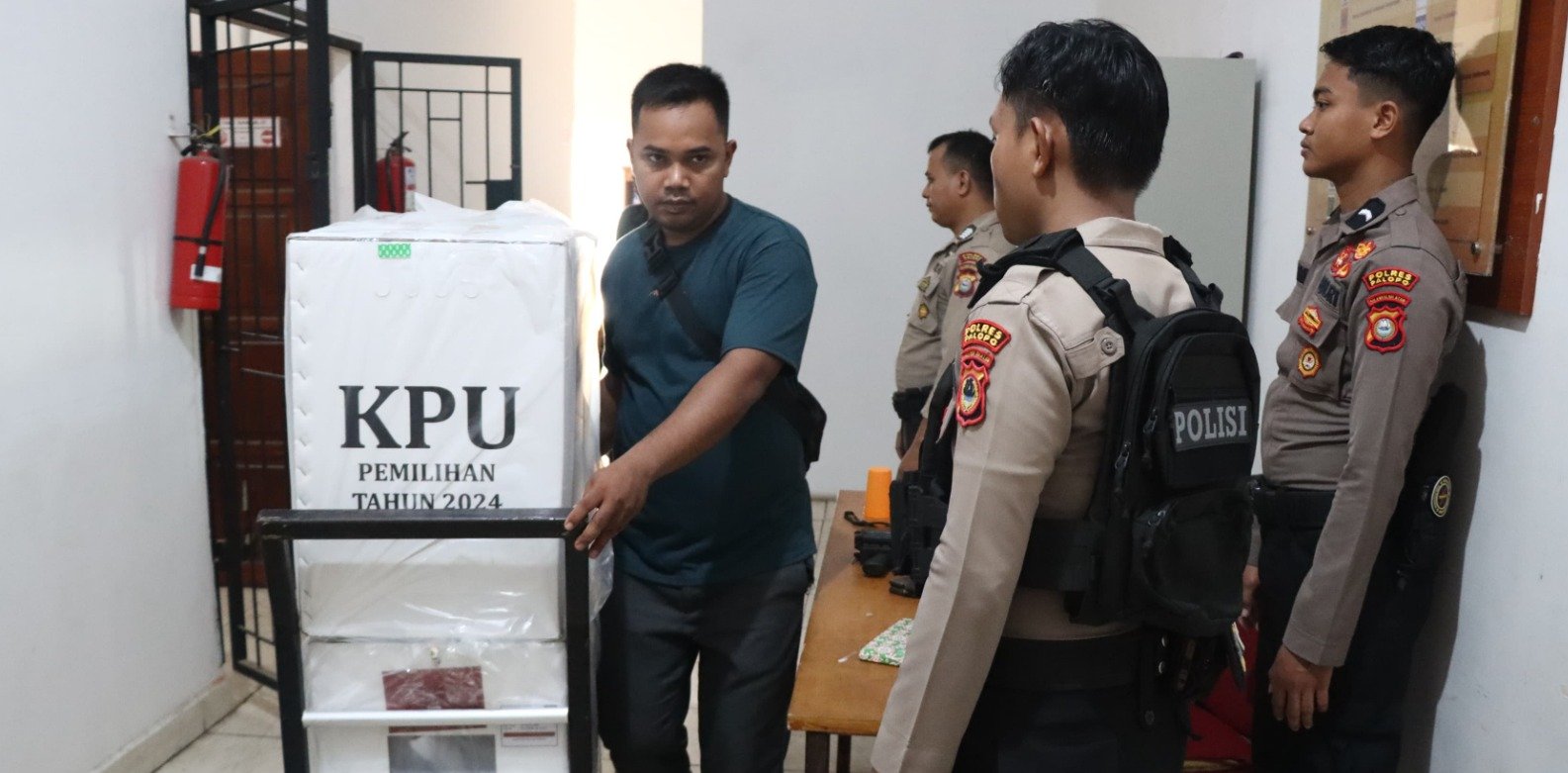 PALOPO,TEKAPE.co – Personel Polres Palopo, mengawal pendistribusian logistik Pilkada 2024, Selasa 26 November 2024.