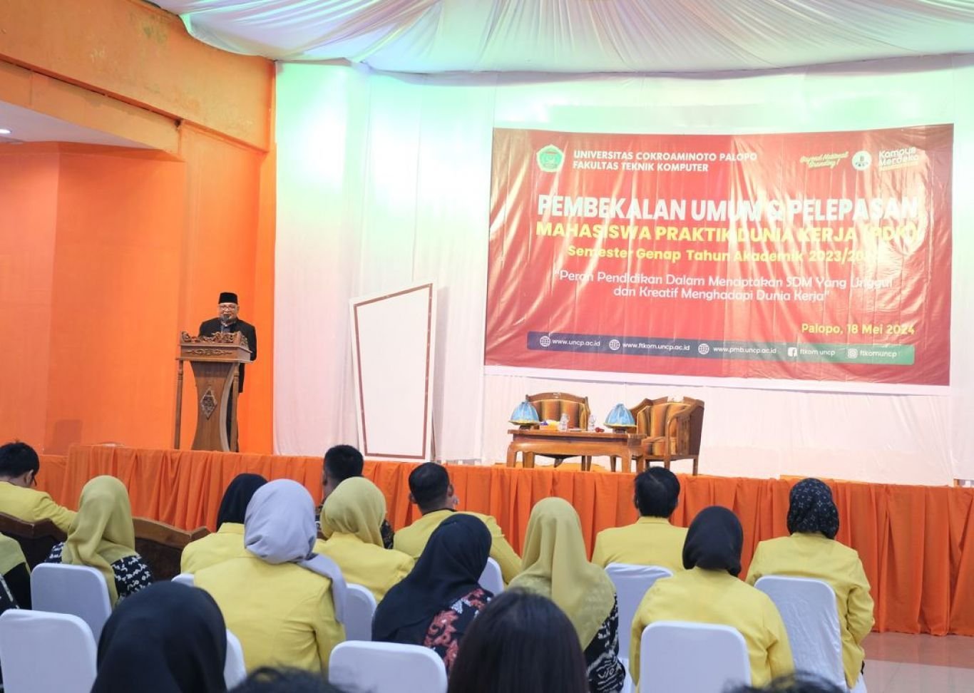PALOPO, TEKAPE.co – Fakultas Teknik Komputer (FTKOM) Universitas Cokroaminoto Palopo (UNCP) menggelar Pembekalan Umum dan Pelepasan Mahasiswa Praktik Dunia Kerja, semester genap tahun akademik 2023/2024.