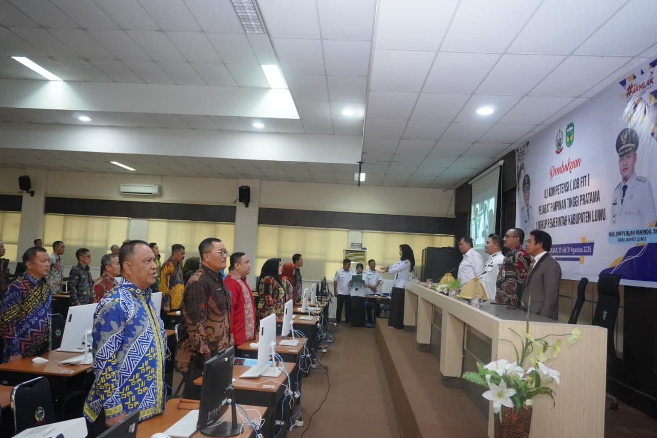 Sementara itu, Kepala BKPSDM Luwu, Muh. Rudi, M.Si, menjelaskan bahwa uji kompetensi ini diikuti oleh 33 pejabat pimpinan OPD. Para peserta akan melalui serangkaian tahapan, mulai dari penilaian rekam jejak, presentasi makalah, wawancara, hingga dialog visi kepemimpinan bersama Bupati dan Wakil Bupati Luwu.