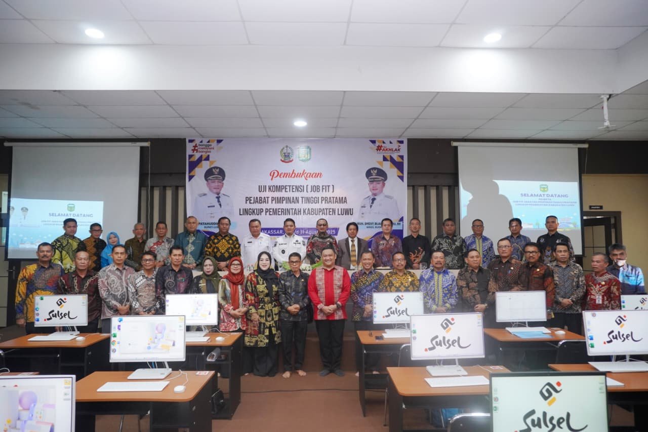 MAKASSAR, TEKAPE.co – Sebanyak 33 Kepala Organisasi Perangkat Daerah (OPD) Pemerintah Kabupaten (Pemkab) Luwu mengikuti Uji Kompetensi (Job Fit) Jabatan Pimpinan Tinggi (JPT) Pratama yang digelar oleh Badan Kepegawaian dan Pengembangan Sumber Daya Manusia (BKPSDM) Kabupaten Luwu.