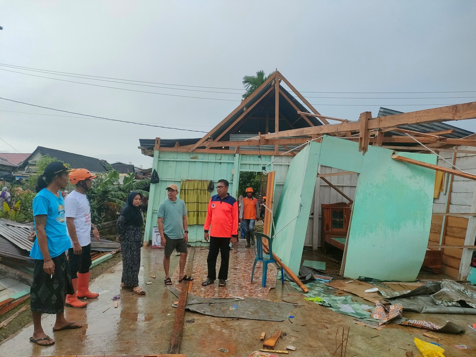 Lanjut Sabaruddin, di dalam rumah dia sendiri dan baru mau melangkah ke masjid tiba-tiba terjadi angin puting beliung, sementara anaknya sudah duluan ke masjid, beruntung istrinya di rumah keluarganya.