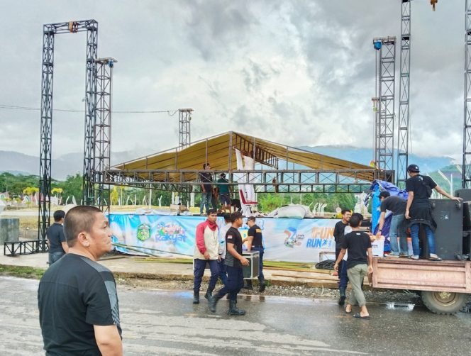 Bupati Luwu Timur, H Irwan Bachri Syam, saat meninjau lokasi panggung konser, Sabtu (17/5/2025). (ist)