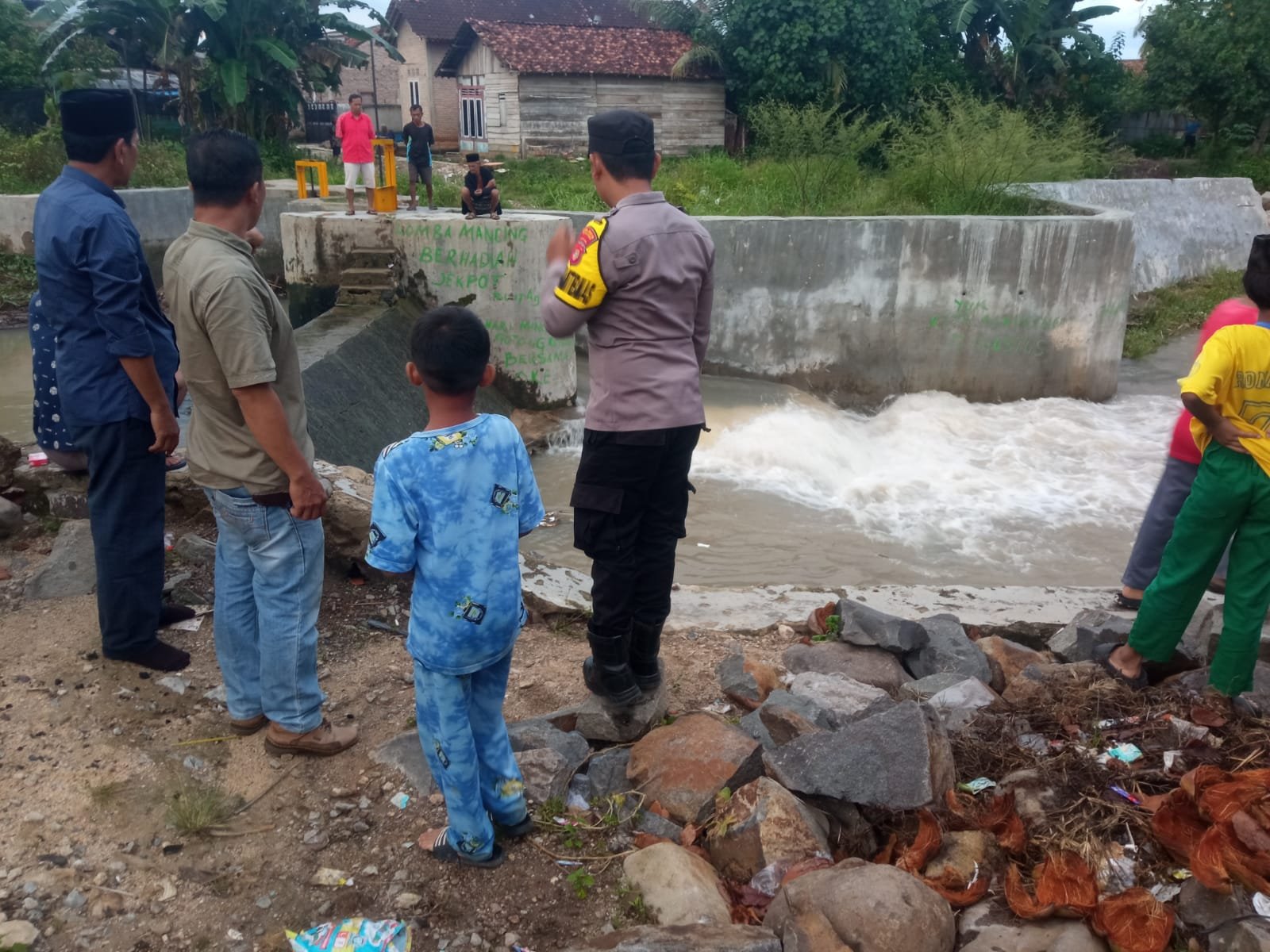 Mendengar kabar ada anak tenggelam, sejumlah warga langsung mendatangai lokasi kejadian dan berupaya menolong korban.