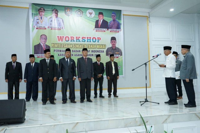 ASAHAN, TEKAPE.co – Bupati Asahan H. Surya BSc melantik pengurus Badan Wakaf Indonesia (BWI) Kabupaten Asahan Periode 2023-2026 sekaligus membuka secara resmi Workshop BWI di Hotel Antariksa, Rabu (20/12/2023).