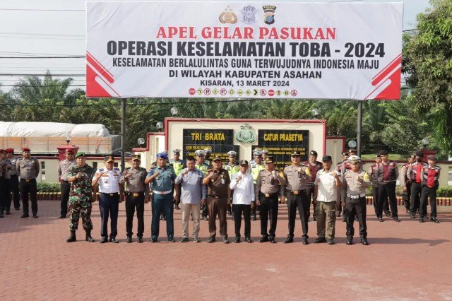 ASAHAN, TEKAPE.co – Bupati Asahan H. Surya BSc, Rabu(13/03/2024) memimpin apel gelar pasukan Operasi Keselamatan Toba 2024 di halaman depan Mapolres Asahan.