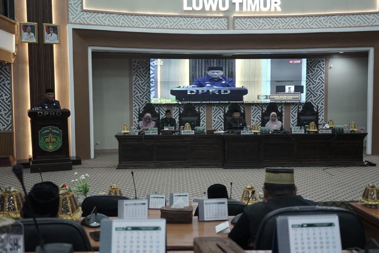 Jawaban tersebut disampaikannya dalam Rapat Paripurna yang digelar di Ruang Sidang Paripurna, Kamis (12/06/2025), dipimpin oleh Ketua DPRD Luwu Timur, Ober Datte dihadiri Wakil Ketua, Hj Harisah Suharjo, perwakilan Unsur Forkopimda Lutim, Sekretaris Daerah, Asisten, Staf Ahi dan Para Kepala OPD Lingkup Pemkab Lutim.