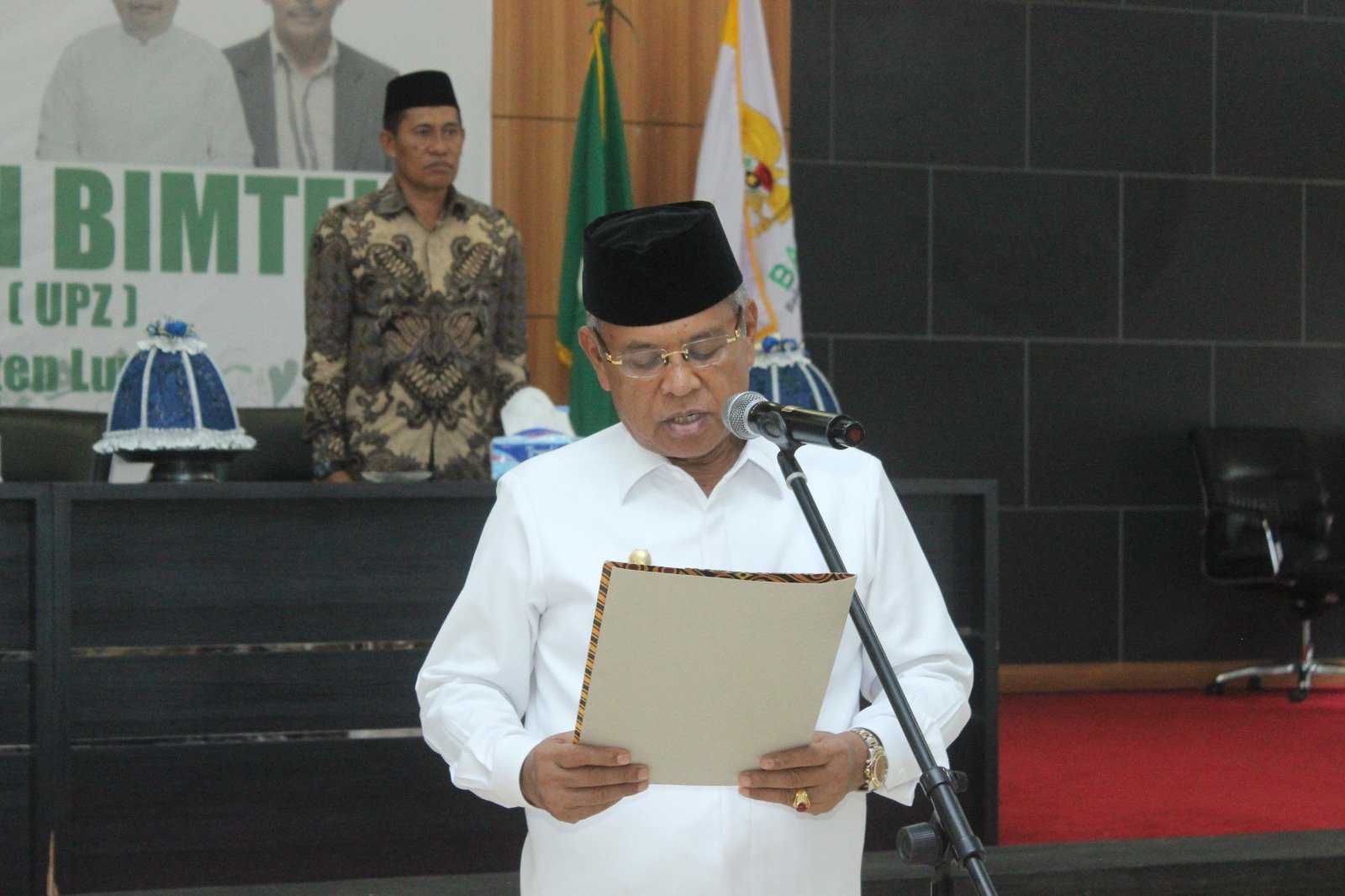 LUWU, TEKAPE.co – Bupati Luwu, Dr. Drs. H. Basmin Mattayang, MPd melantik Unit Pengumpul Zakat (UPZ) tingkat desa se-Kabupaten Luwu di aula Andi Kambo kompleks perkantoran Pemkab Luwu, Sabtu, 10 Februari 2024.