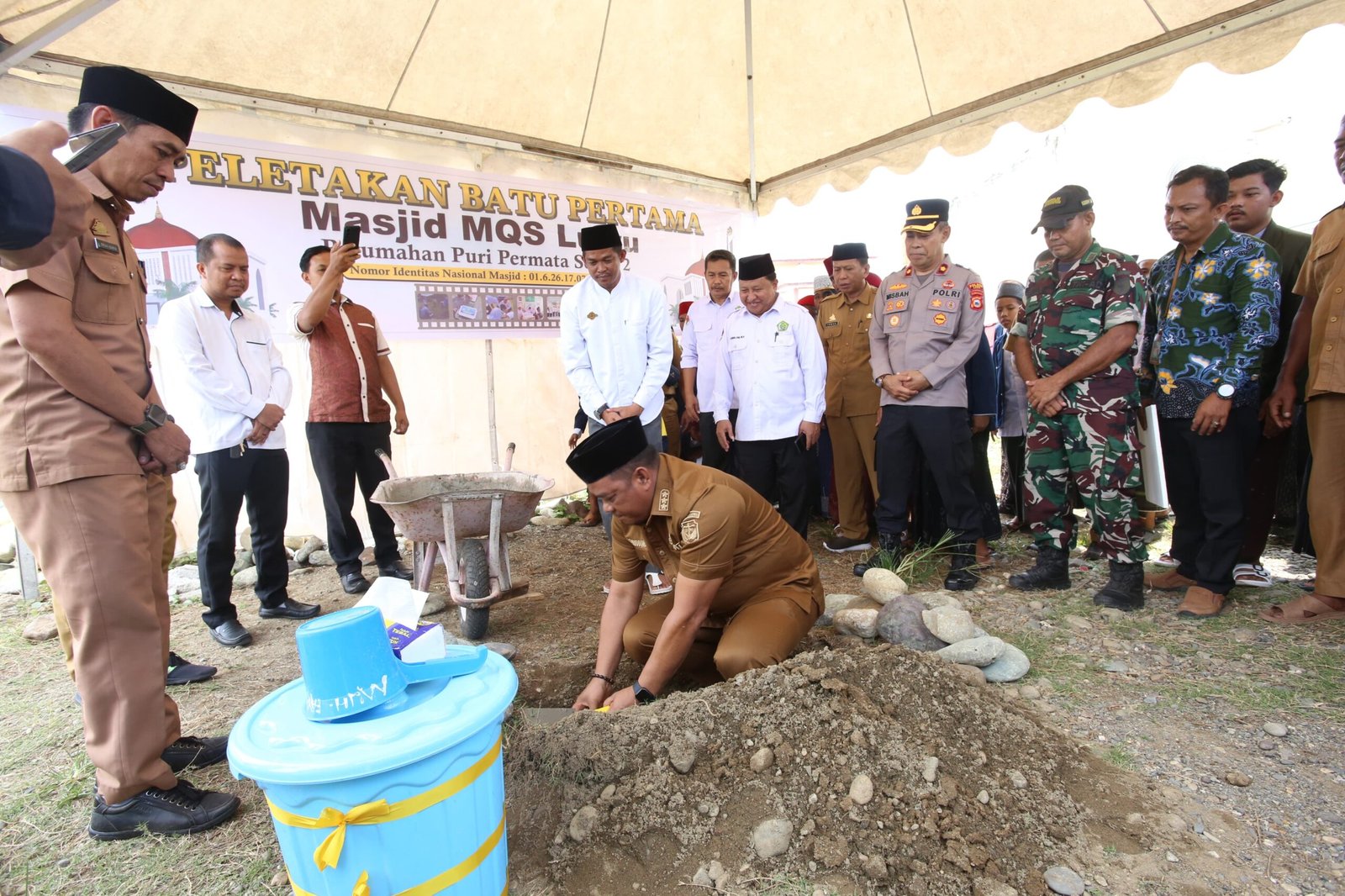 LUWU, TEKAPE.co – Bupati Luwu, Patahudding, secara resmi meletakkan batu pertama pembangunan Masjid Ma’had Qori Sulawesi (MQS) Luwu di Perumahan Puri Permata Senga 2, Jalan Batu Murrung, Kelurahan Senga, Kecamatan Belopa, Selasa (21/10).