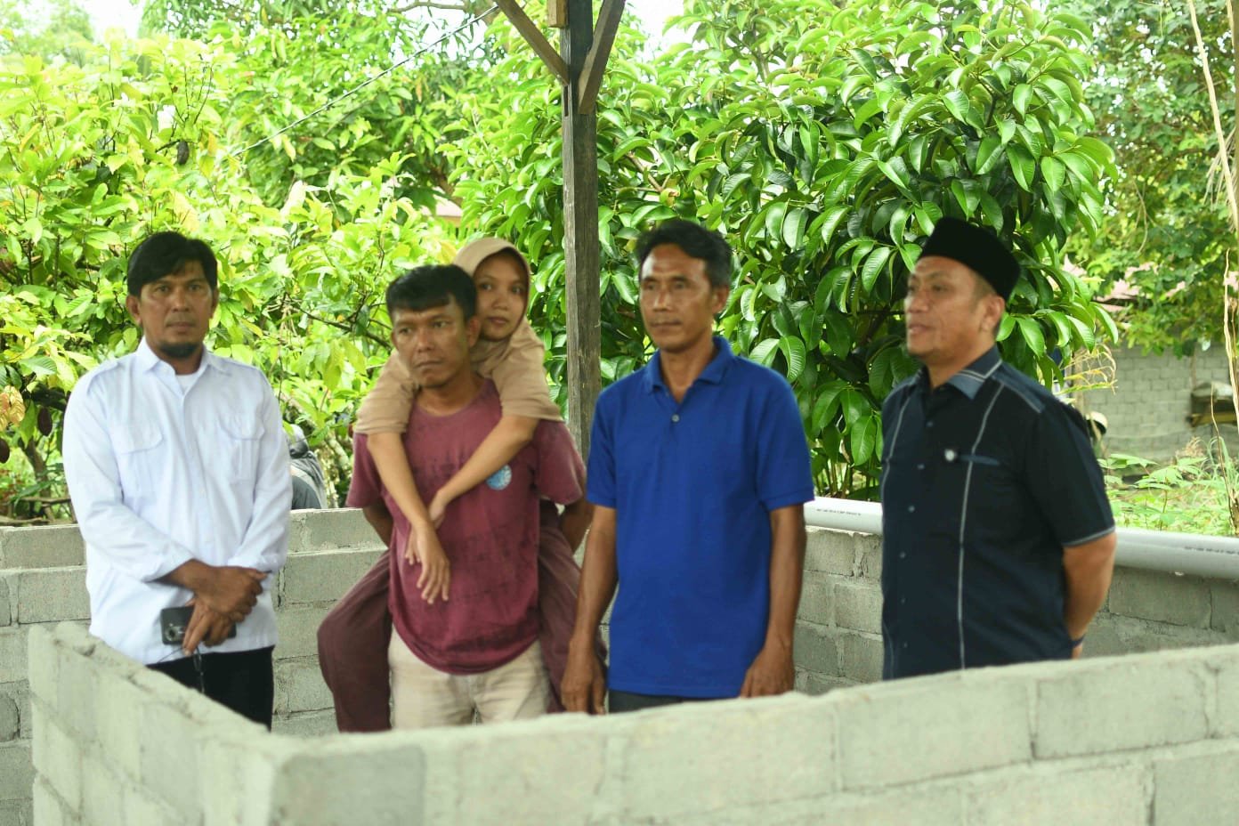 Kunjungan tak berhenti di ruang tamu. Bupati juga meninjau kondisi rumah Evi yang masih dalam proses pembangunan. Batu bata tersusun rapi, tapi banyak yang belum selesai.
