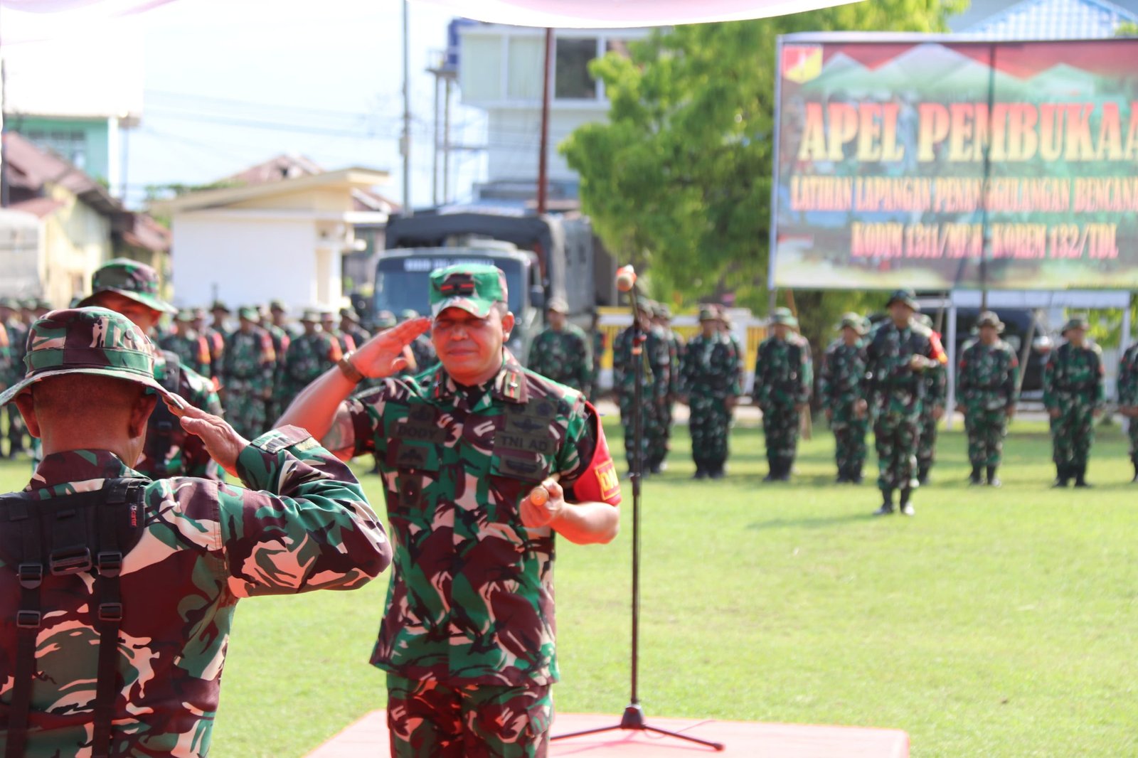 Kegiatan latihan penanggulangan bencana itu dipimpin langsung Danrem 132/Tdl Brigjen TNI Dody Triwinarto, SIP M.Han, didampingi Perwira tertua Apel Dandim 1311/Mrw Letkol Inf Alzaki SE MM MBA M.MAS.