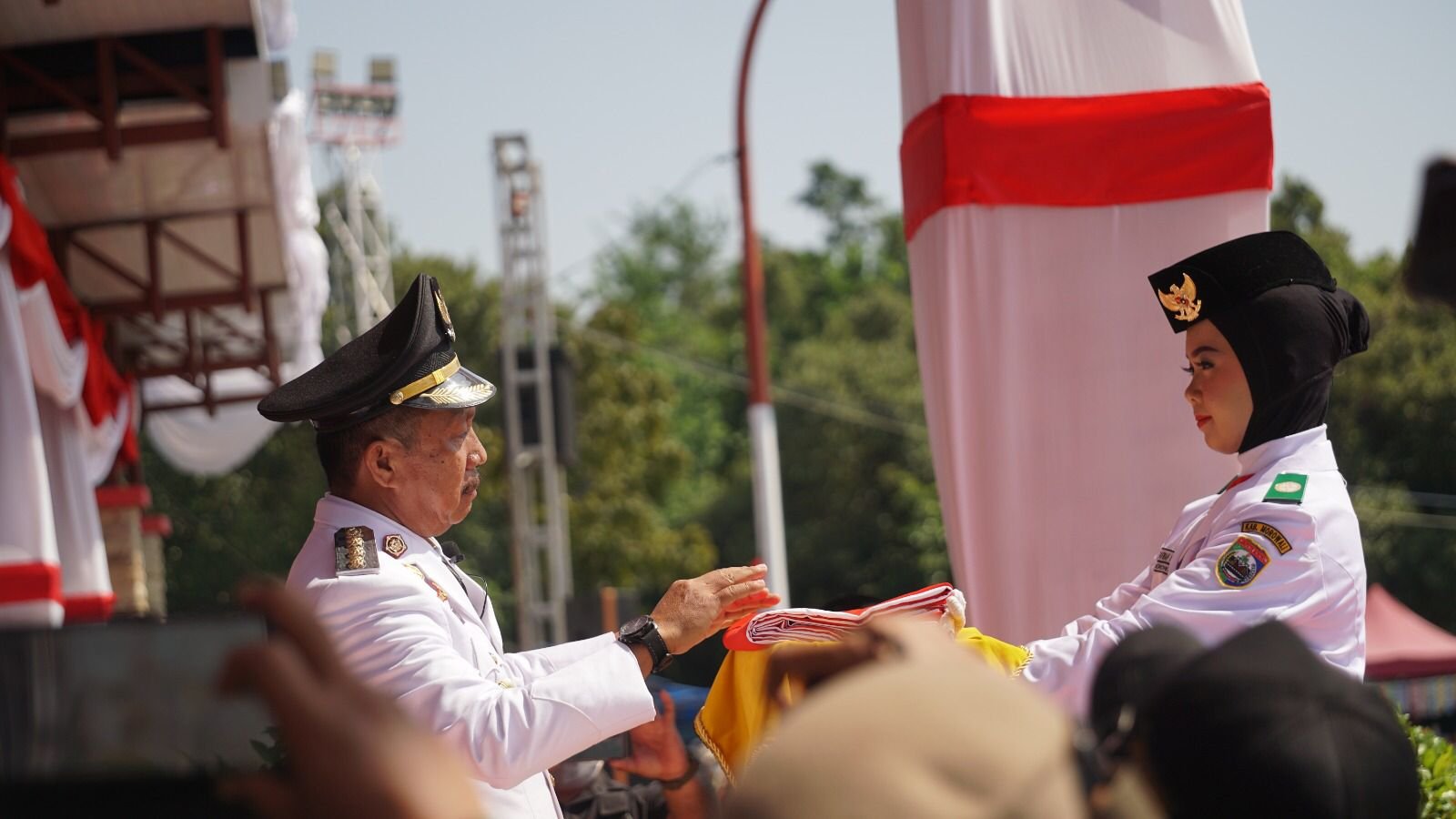 MOROWALI, TEKAPE.co – Upacara peringatan Hari Kemerdekaan Republik Indonesia (RI) Ke-79 di Kabupaten Morowali tahun ini diwarnai dengan momen haru. Penjabat (PJ) Bupati Morowali, Drs. Yusman Mahbub, M.Si, menyerahkan Bendera Pusaka kepada putrinya, Najwa Safira Yusman, yang bertugas sebagai pembawa baki bendera dalam upacara pengibaran di Alun-alun Rumah Jabatan Bupati Morowali. (17/08)