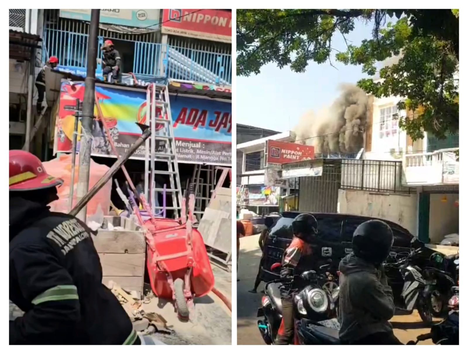 Terlihat api membesar di lantai ruko yang menjual alat dan bahan bangunan itu.