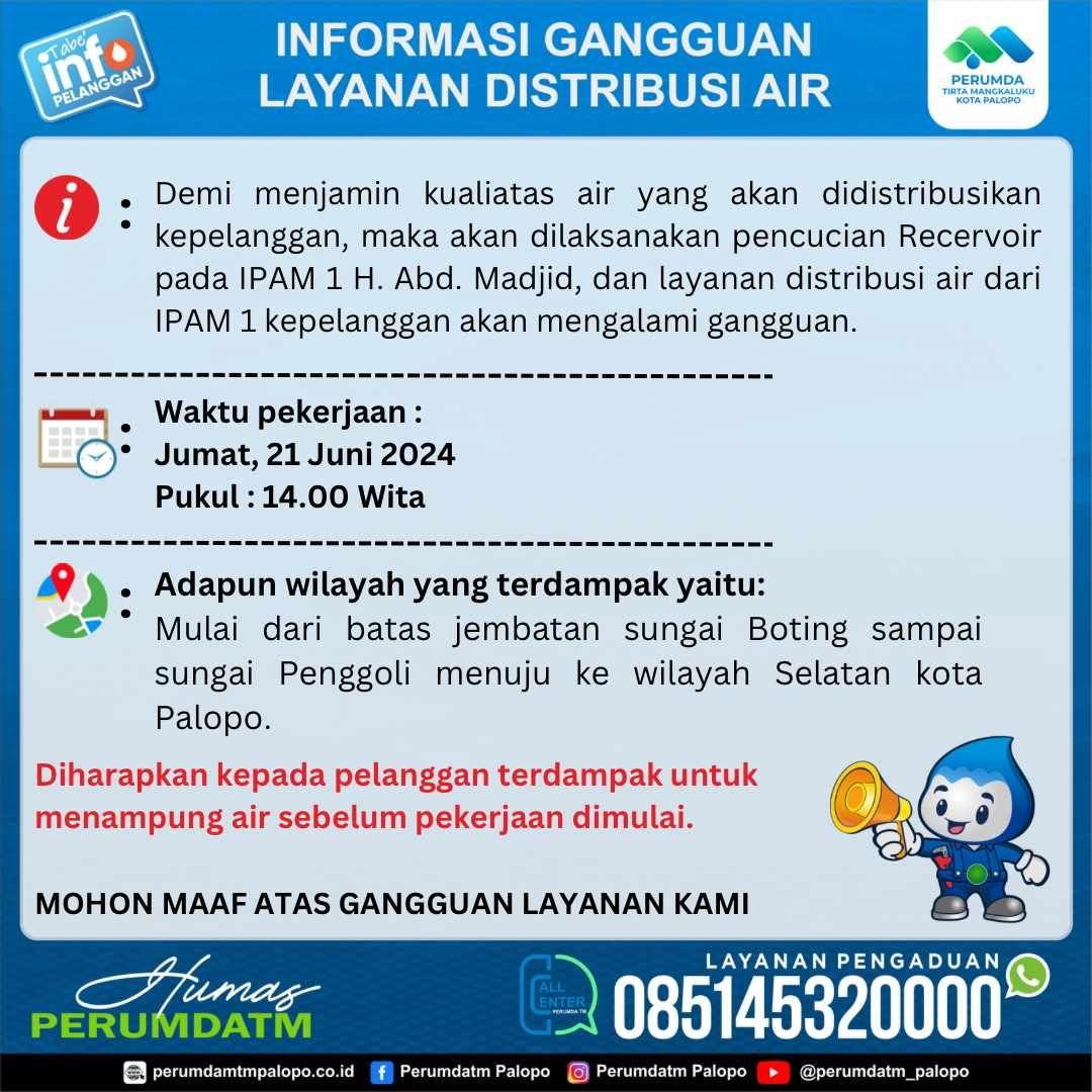 Informasi gangguan layanan distribusi air.
