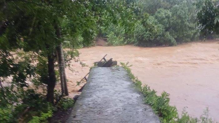Selain jembatan putus, empat ekor sapi milik warga dikabarkan hanyut terbawa arus.