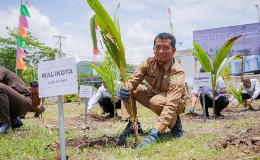 PALOPO, TEKAPE.co – Kepala Dinas Lingkungan Hidup (DLH) Kota Palopo, Emil Nugraha, mewakili Wali Kota dalam kegiatan penanaman bibit pohon kelapa serentak yang dilaksanakan di Lahan Pertanian Lapas Kelas IIA Palopo, Selasa (9/9/2025).