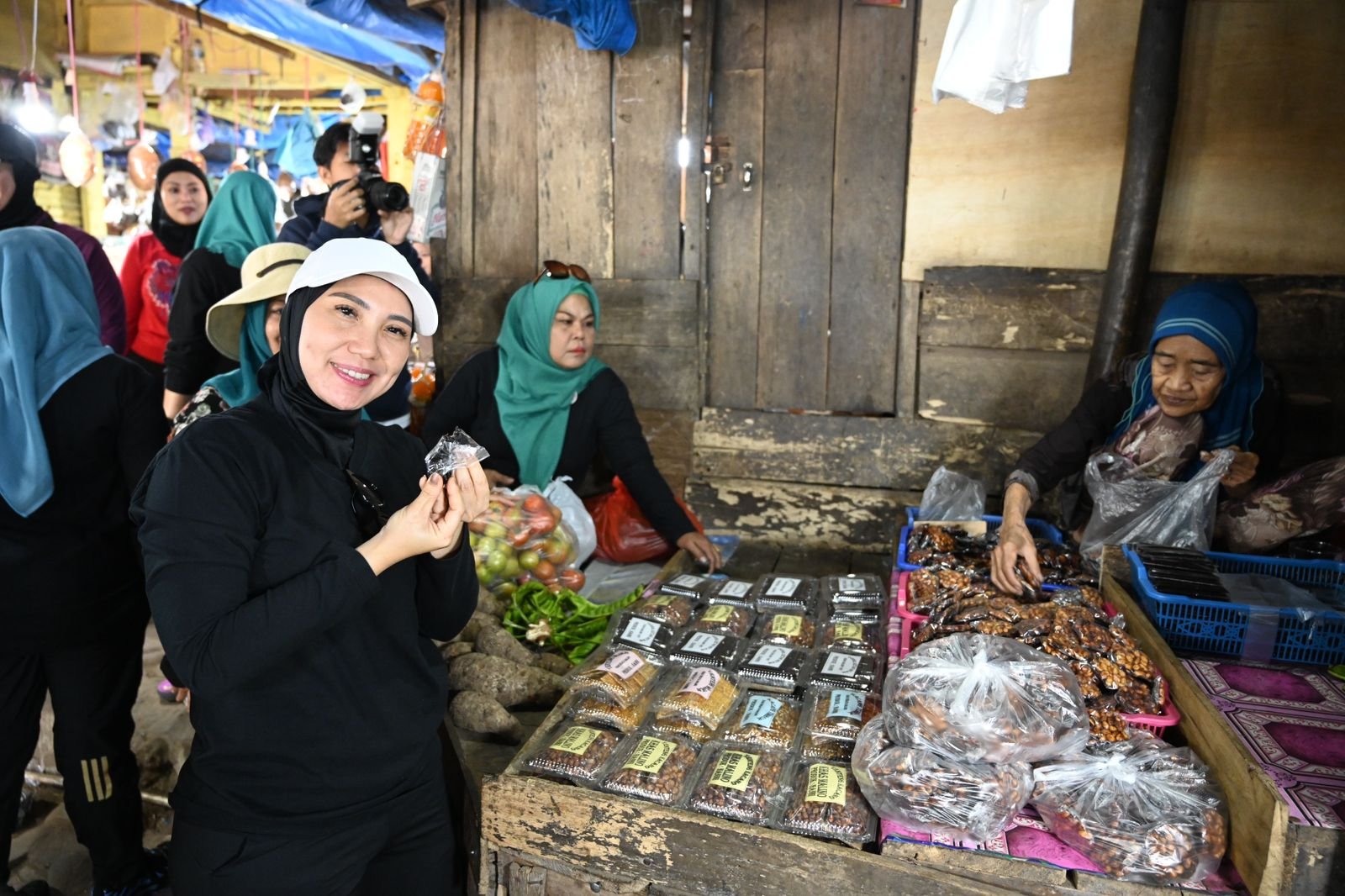 GOWA, TEKAPE.co – Pj Ketua Tim Penggerak PKK Sulsel, Sofha Marwah Bahtiar, di sela kunjungan kerjanya ke Kabupaten Gowa, 7 – 8 Oktober 2023, menyempatkan berkunjung ke Pasar Sentral Malino. Didampingi sejumlah pengurus PKK Sulsel, ia berbelanja berbagai jenis cemilan tradisional khas Malino, hingga aneka sayur dan buah.