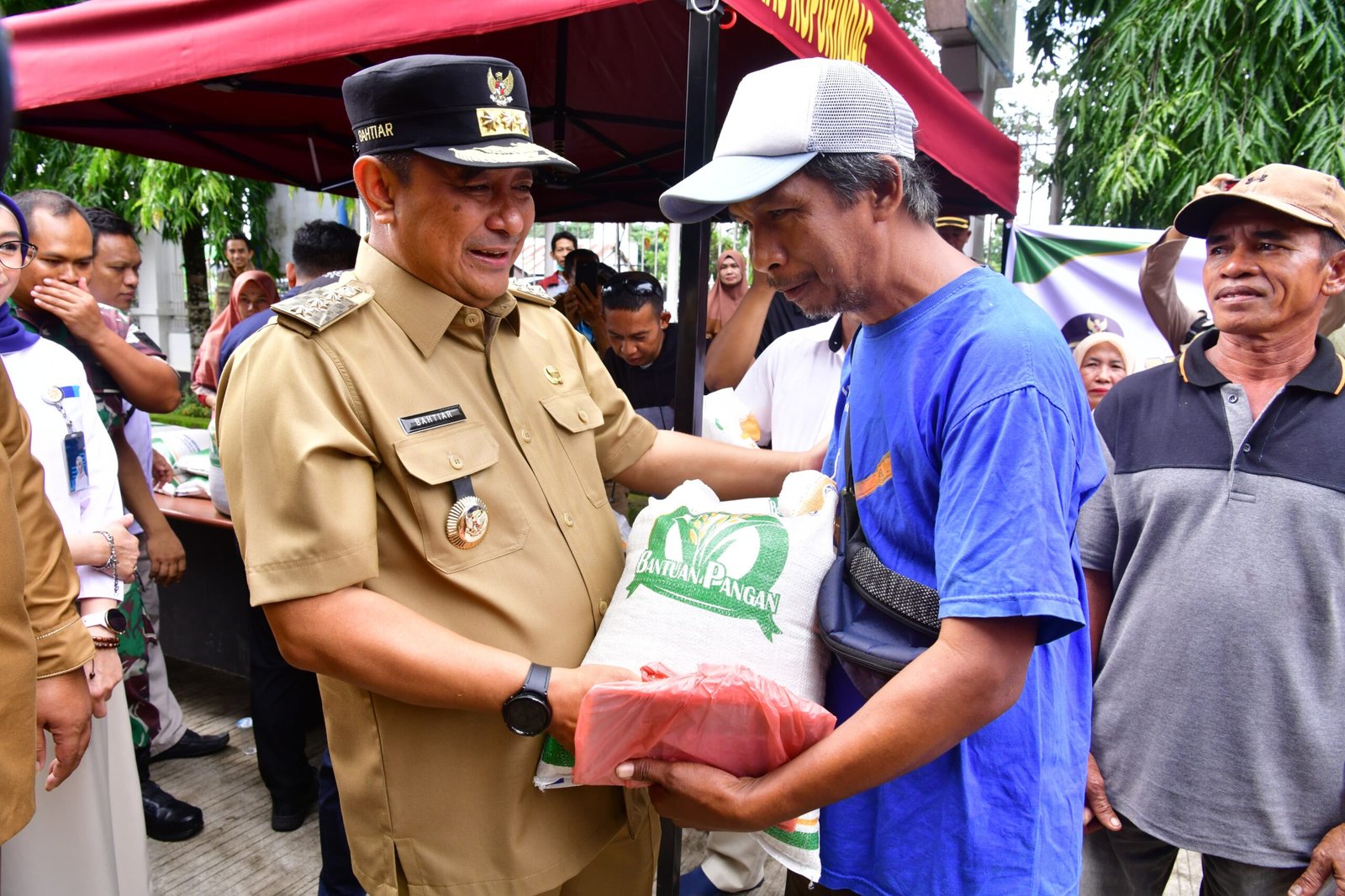 MAROS, TEKAPE.co – Para penerima bantuan pangan di Maros menyampaikan rasa bahagia dan syukurnya saat menerima bantuan pangan dari Penjabat Gubernur Sulawesi Selatan (Sulsel), Bahtiar Baharuddin.
