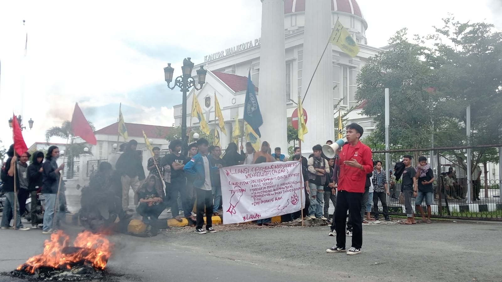 PALOPO, TEKAPE.co – Sejumlah mahasiswa melakukan aksi unjuk rasa di depan Kantor Wali Kota Palopo, Rabu 3 April 2024.
