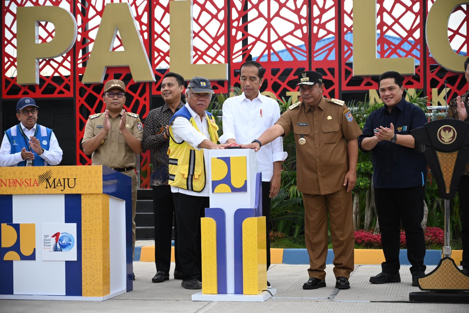 Presiden Jokowi didampingi Penjabat Gubernur Sulsel Bahtiar Baharuddin, meresmikan Kawasan Timur Indonesia (KTI), Kamis, 22 Februari 2024. (ist)