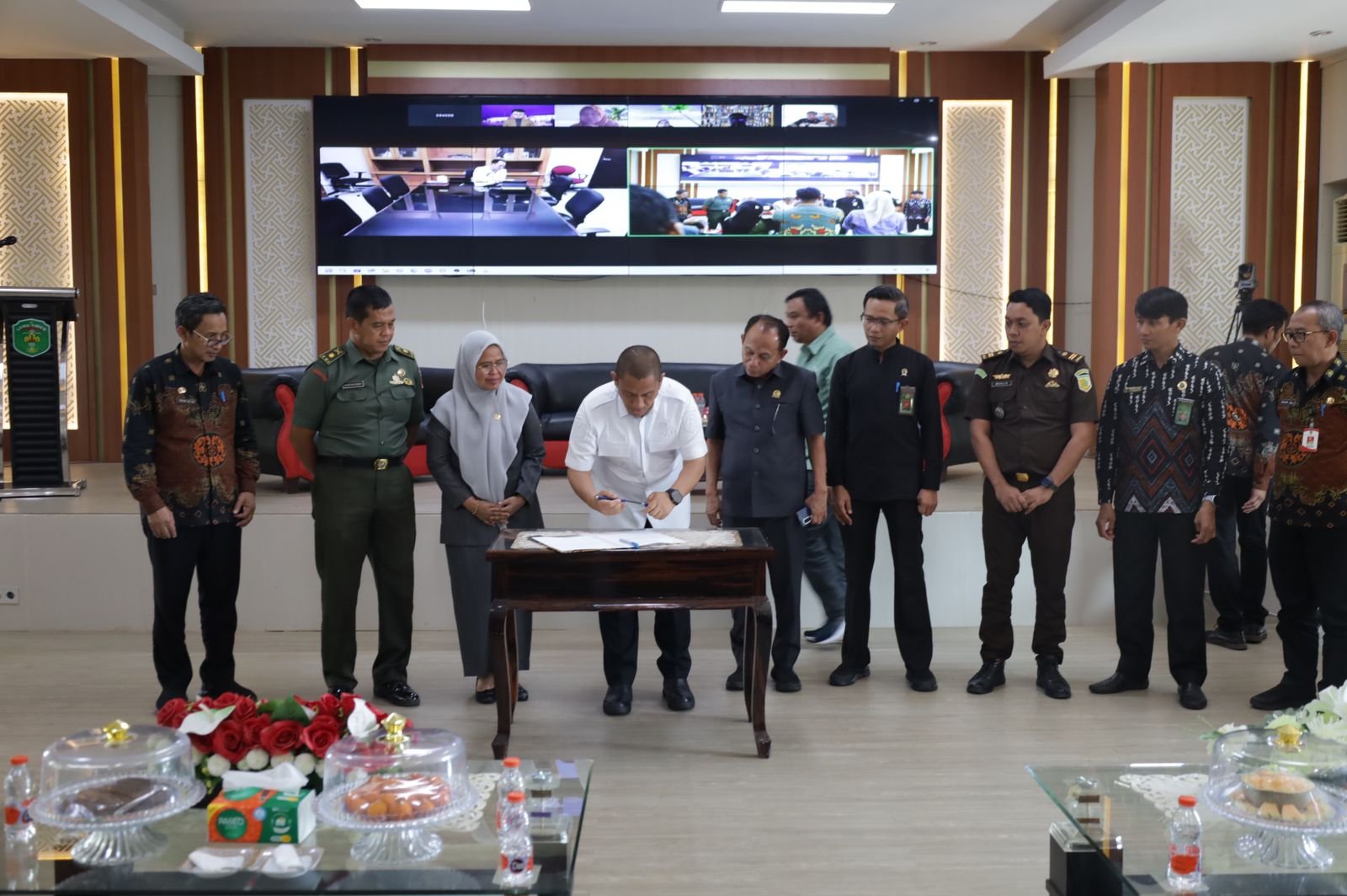 Acara kemudian dilanjutkan dengan penandatangan berita acara oleh Bupati dan Forkopimda serta Wakil Ketua I dan II DPRD Luwu Timur, serta Perwakilan PT Vale Indonesia. (hms)