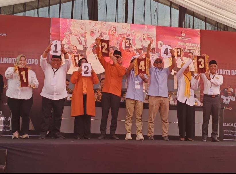PALOPO, TEKAPE.co – Empat pasang calon (Paslon) Wali Kota dan Wakil Wali Kota Palopo cabut nomor urut.