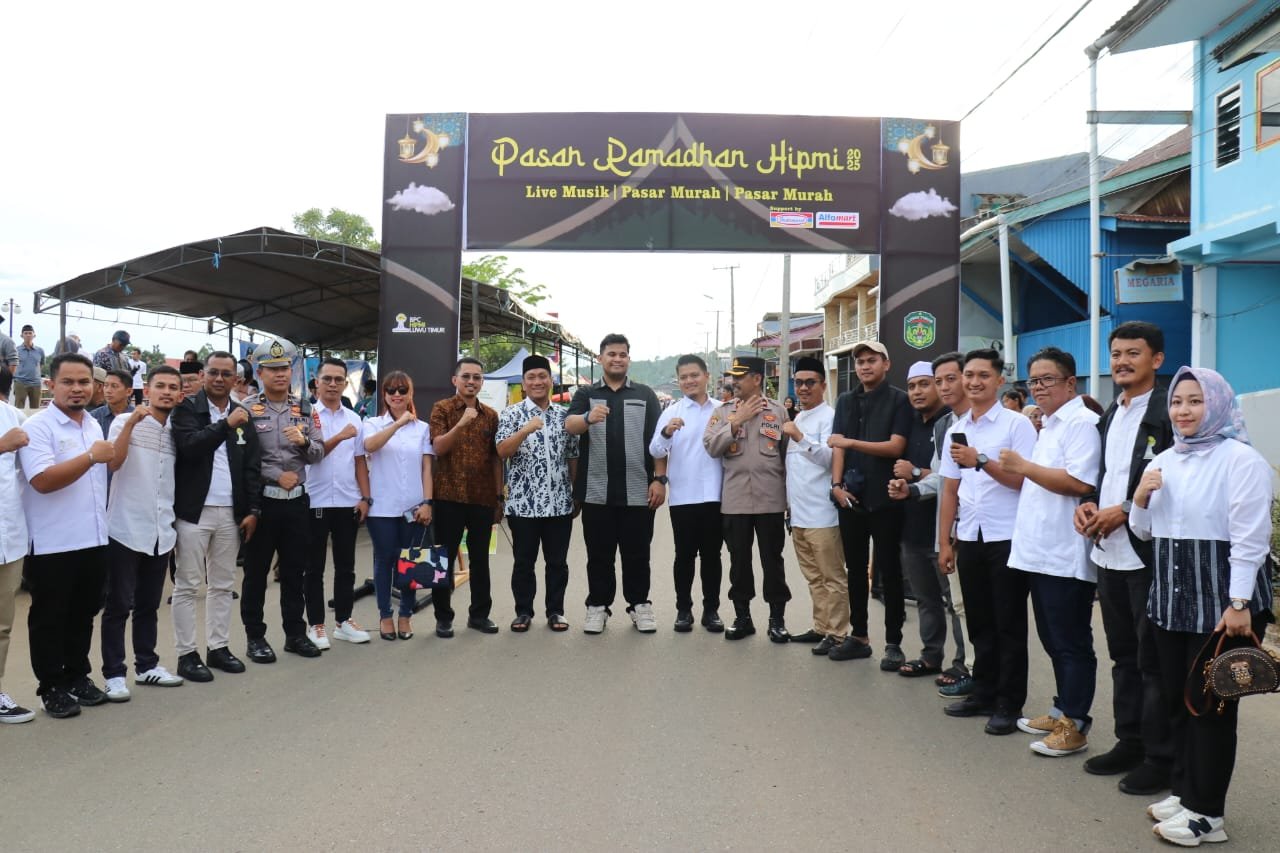Foto bersama di Pasar Ramadhan HIPMI di Anjungan Sungai Malili. (hms)
