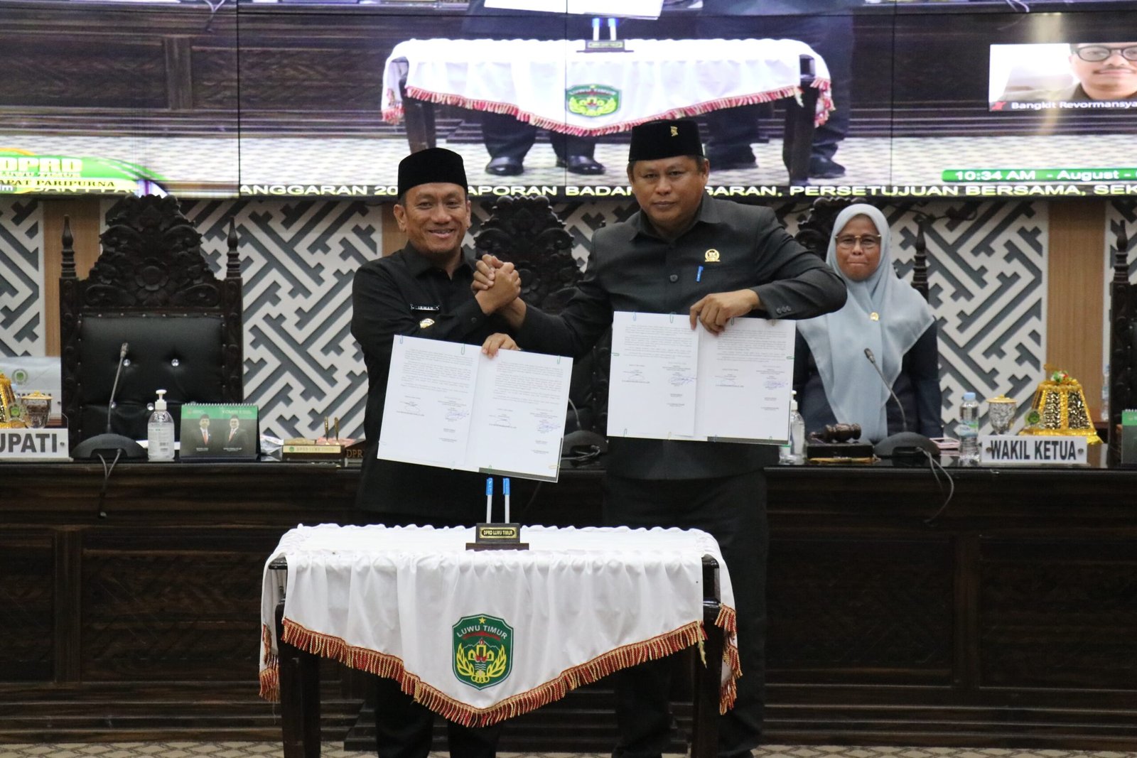 Rapat Paripurna ditutup dengan penandatanganan Nota Kesepakatan Bersama oleh Bupati Irwan dan Ketua DPRD Ober Datte, disaksikan oleh seluruh peserta rapat, sebagai simbol persatuan visi dan komitmen membangun Luwu Timur yang lebih maju dan sejahtera. (hms)