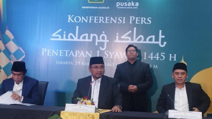 “Disepakati 1 Syawal 1445 Hijriah jatuh pada hari Rabu 10 April 2024,” ujar Menteri Agama Yaqut Cholil Qoumas.