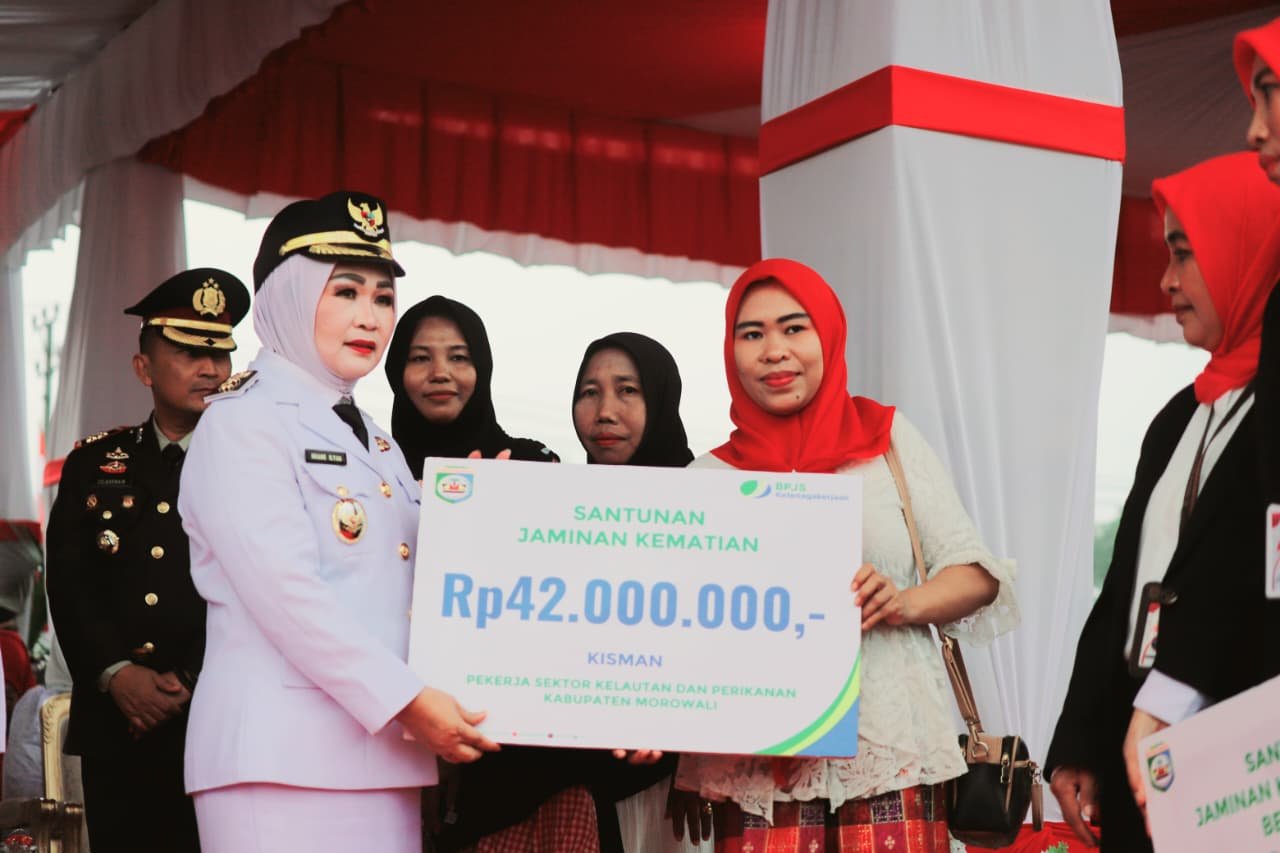 Selain upacara, Pemkab Morowali menyerahkan santunan kematian BPJS Ketenagakerjaan senilai Rp42 juta kepada ahli waris lima warga: Kisman (Lahuafu), Fadliyansyah (Lanona), Awalduin (Geresa), Samid (Laroue), dan Saudi (Bahomoahi).