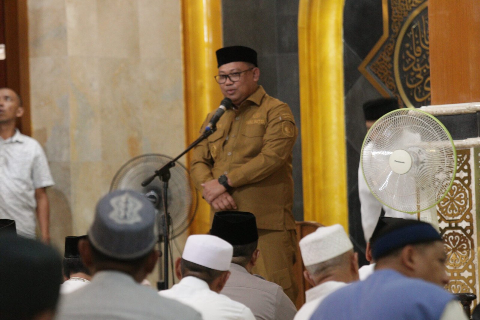 Pejabat (Pj) Wali Kota Palopo Asrul Sani saat menyampaikan sambutannya di acara doa bersama di Agung Luwu Palopo, Minggu 31 Desember 2023. (Dok: Kominfo)