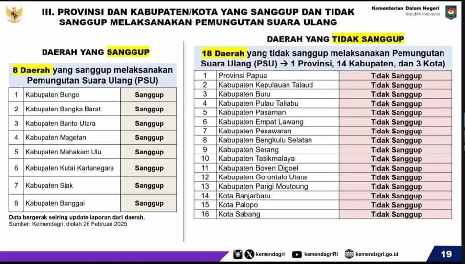 Palopo menjadi salah satu dari 18 daerah yang menyatakan ketidaksanggupan dalam menyelenggarakan PSU.