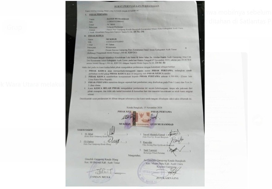 Nasrul menjelaskan bahwa mobilnya sebelumnya mengalami kecelakaan dan sempat ditahan di Satlantas Polres Aceh Timur.