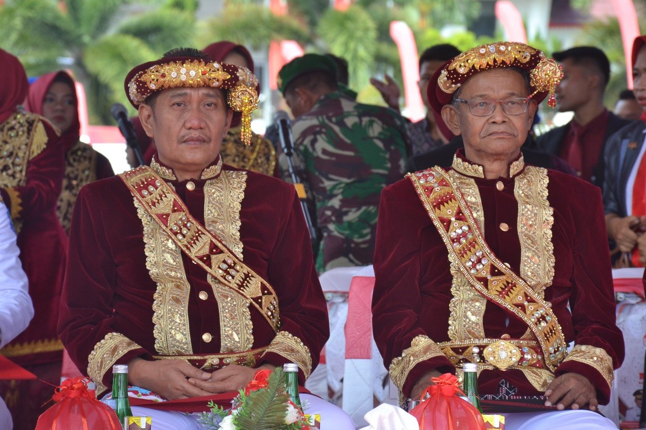 Terpantau Gubernur Sulawesi Tengah bersama seluruh undangan mengenakan Pakaian Adat Tobungku bercorak warna merah putih.