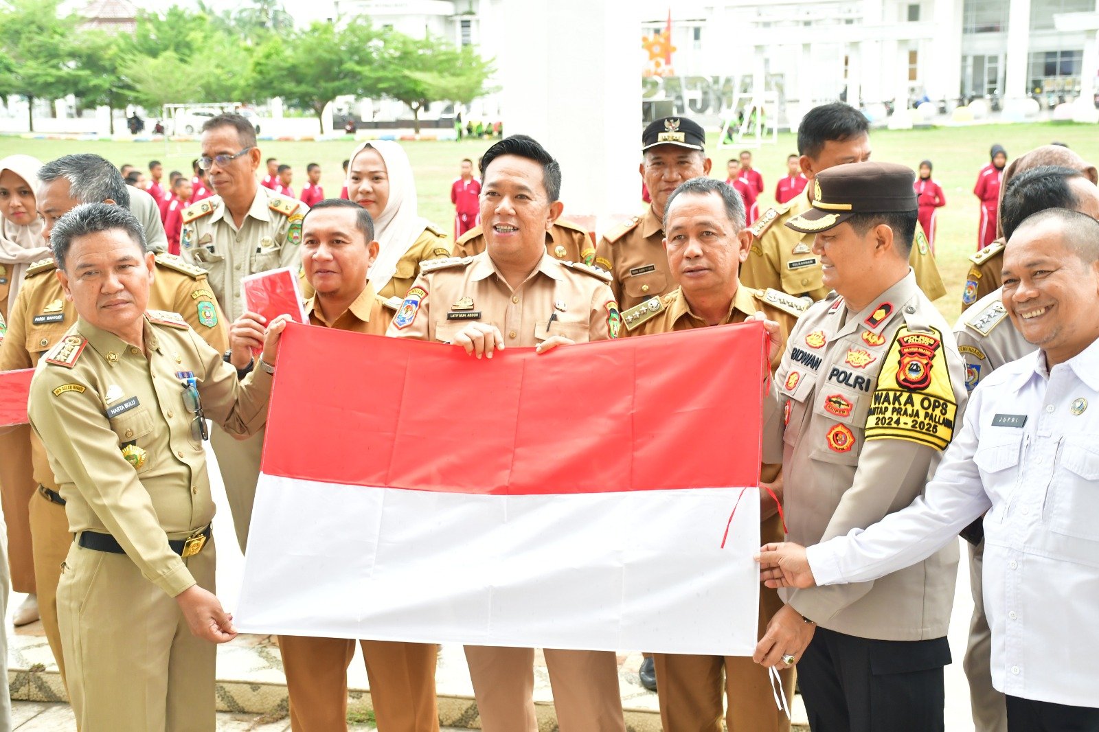 Kegiatan dilanjutkan dengan pembagian bendera kepada Camat dan Lurah se-Kota Palopo. Kegiatan ini juga dirangkaikan dengan pembukaan pemusatan pelatihan Paskibraka Kota Palopo tahun 2024 dengan ditandai penyematan atribut paskibra secara simbolis.