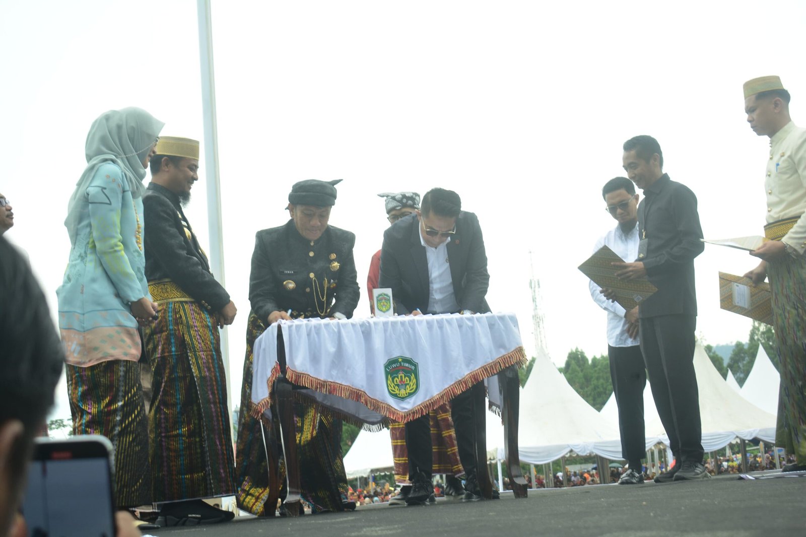 Penandatanganan MoU antara investor dengan Pemkab Luwu Timur, pada puncak peringatan HUT ke-22 Kabupaten Luwu Timur, yang disaksikan langsung Mentan Amran Sulaiman, Gubernur Sulsel Andi Sudirman Sulaiman, beserta para pejabat dan ribuan masyarakat yang hadir. (ist)
