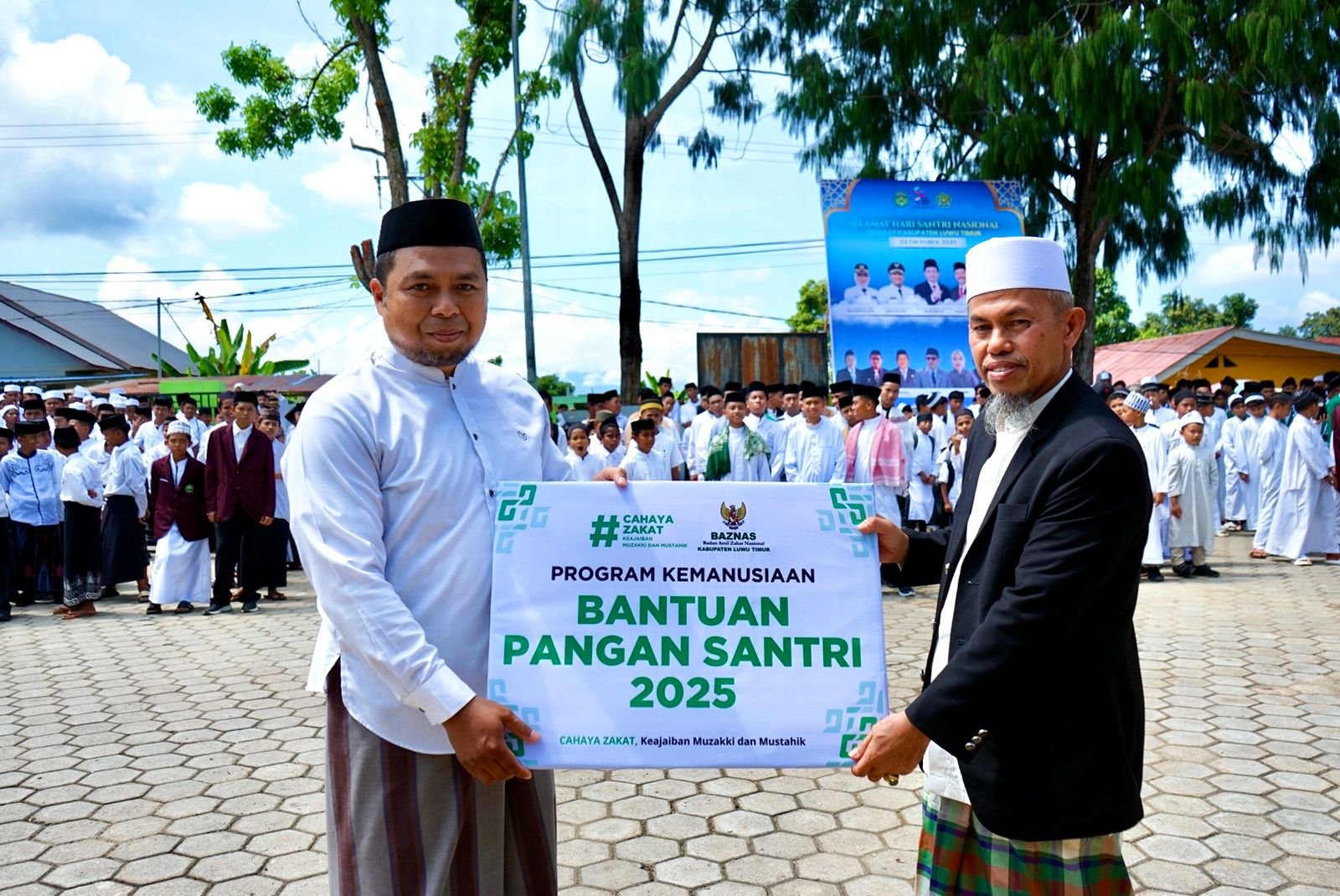 Peringatan Hari Santri 2025 di Kabupaten Luwu Timur juga dirangkaikan dengan penyerahan secara simbolis Bantuan Pangan Santri dari Baznas kepada perwakilan pondok pesantren di Luwu Timur.