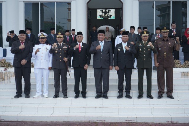 ASAHAN, TEKAPE.co – Bupati Asahan Taufik Zainal Abidin S.Sos, M.Si memimpin upacara Hari Lahir Pancasila di halaman kantor bupati setempat, Minggu (01/06/2025).
