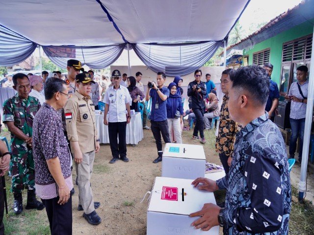 PRINGSEWU, Tekape.co – Pj Bupati Pringsewu, Dr. Marindo Kurniawan, ST., MM, bersama dengan jajaran Forkopimda, meninjau pelaksanaan pemungutan suara dalam Pemilihan Umum Kepala Daerah (Pemilukada) Serentak 2024 di beberapa Tempat Pemungutan Suara (TPS) di Kabupaten Pringsewu, Rabu (27/11/2024).