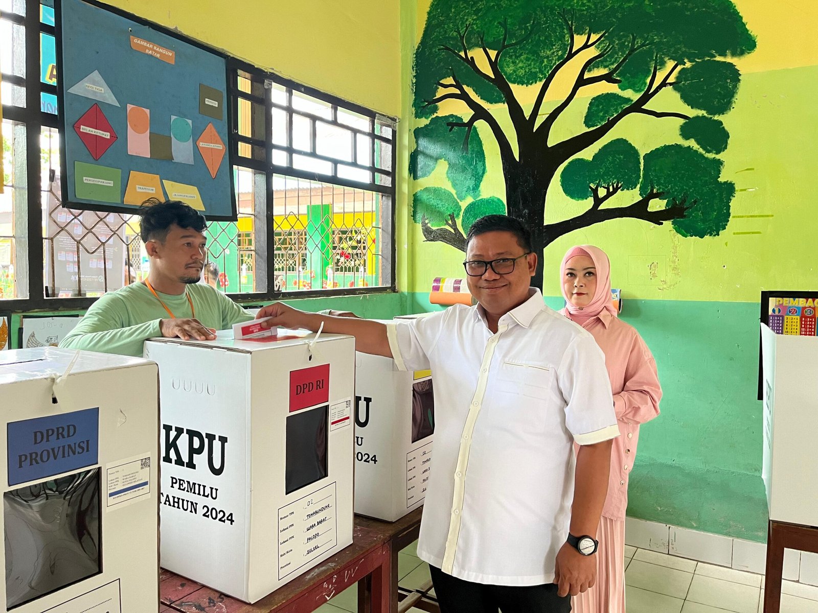 PALOPO, TEKAPE.co – Pejabat Wali Kota Palopo Asrul Sani bersama Pj PKK Kota Palopo Hasnawati Asrul menyalurkan hak pilihnya, Rabu (14/02/2024).