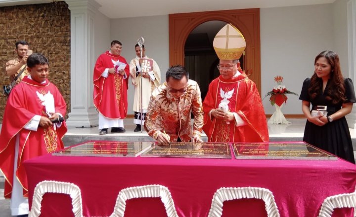 MORUT, TEKAPE.co – Bupati Morowali Utara (Morut), Delis Julkarson Hehi meresmikan Gereja Katolik Paroki Maria Bunda Penolong Abadi Beteleme, di Desa Beteleme, Kecamatan Lembo, Morut, Minggu 28 Mei 2023 pagi.