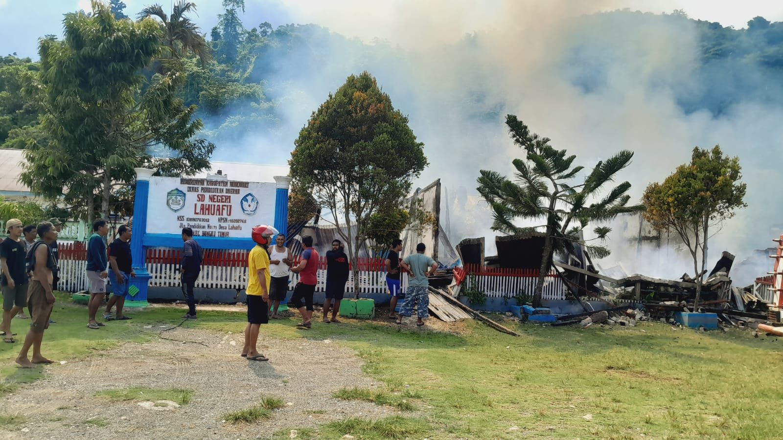 Akibat kebakaran tersebut, tiga ruangan kegiatan belajar mengajar dan ruangan perpustakaan di SDN Lahuafu hangus dilalap api.