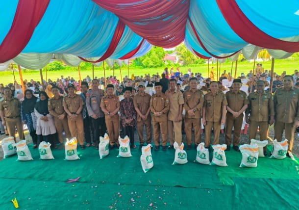 Sekda Morowali juga menyerahkan bantuan pangan dalam rangka Penanggulangan Kemiskinan Ekstrem tahun 2024 di Kecamatan Bumi Raya.