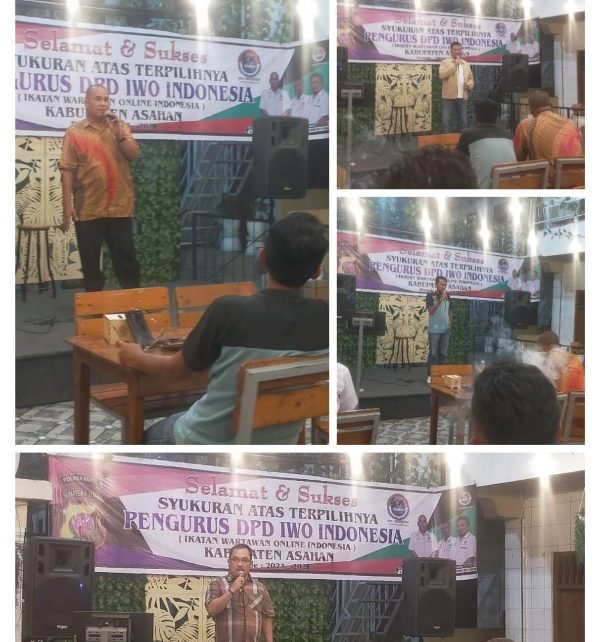 ASAHAN, TEKAPE.co – Dewan Pimpinan Daerah Ikatan Wartawan Online Indonesia (DPD IWOI) Kabupaten Asahan menggelar acara syukuran di Barbara Cafe Jalan Diponegoro Kisaran, Selasa (10/10/2023) malam.