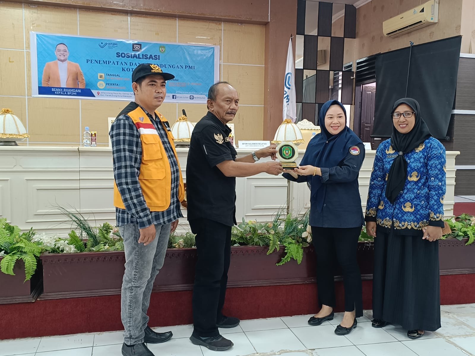 Pada kegiatan tersebut BP3MI memberikan plakat kepada Pemerintah Kota Palopo.(Rin)