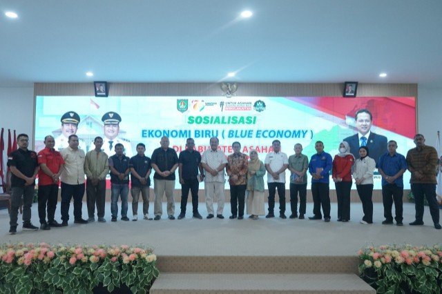 ASAHAN, TEKAPE.co – Pemerintah Kabupaten Asahan menerima kunjungan kerja anggota DPR RI Prof Dr. Ir. H. Rokhim Dahuri Msi dalam rangka sosialisasi ekonomi biru (blue economy) tentang pengelolaan sumber daya laut dan pesisir secara berkelanjutan untuk mencapai keseimbangan antara pertumbuhan ekonomi, kesejahteraan masyarakat, dan kelestarian lingkungan laut.Kegiatan yang berlangsung di Aula Melati kantor bupati setempat, Sabtu (12/04/2025) itu dihadiri Bupati Asahan Taufik Zainal Abidin Siregar S.Sos, Msi, Wakil Bupati Rianto SH, MAP, Wakil Ketua DPRD Asahan Rosmansyah STP, Sekretaris Daerah Drs. Zainal Aripin Sinaga MH, jajaran asisten, staf ahli, OPD, camat, kepala desa, pengurus HNSI dan organisasi masyarakat perikanan yang ada di Asahan lainnya.