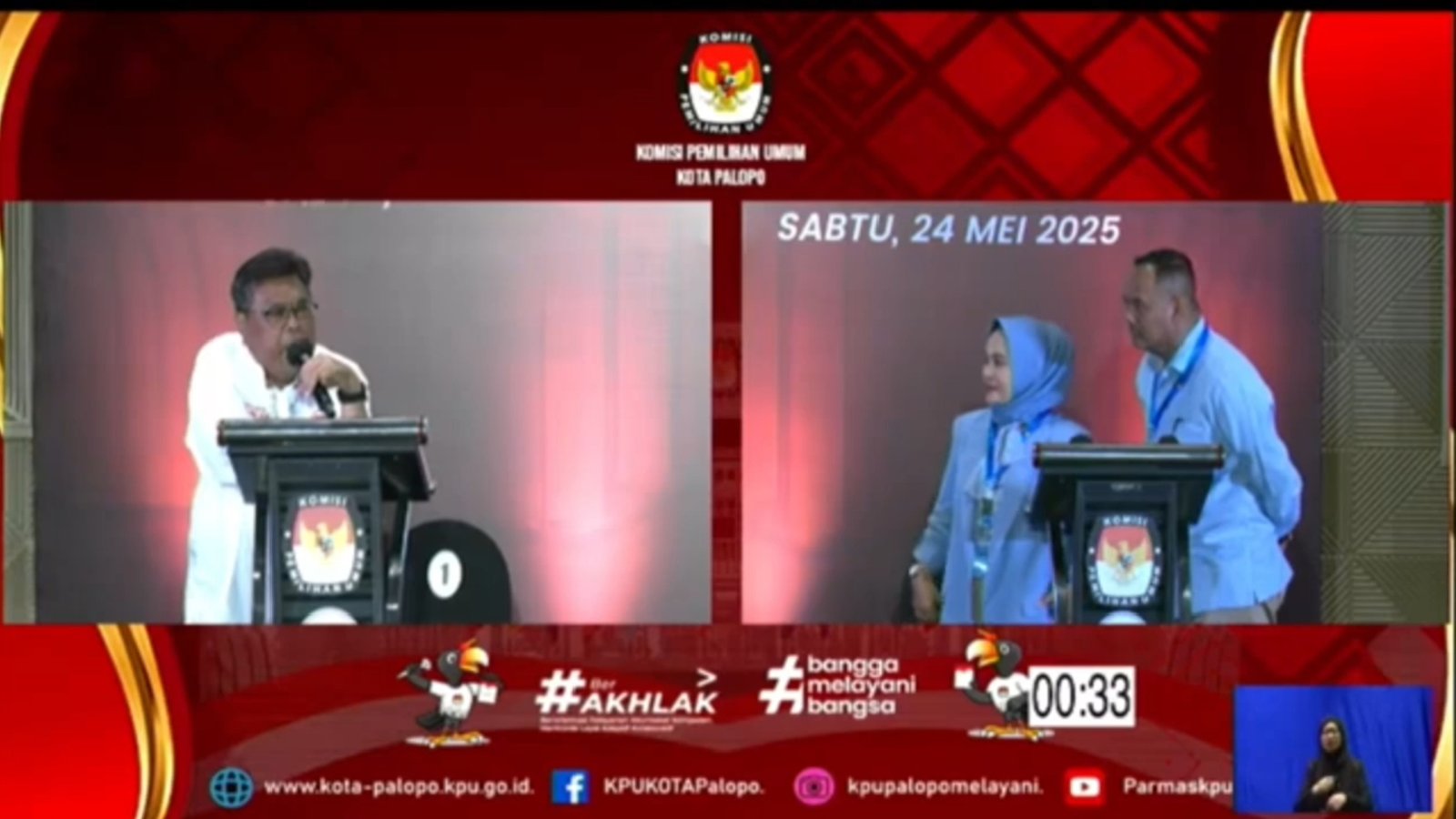 Dalam sesi debat tersebut, HB tampil seorang diri tanpa didampingi pasangannya, Putri Dakka, yang dikabarkan berhalangan hadir karena alasan kesehatan.