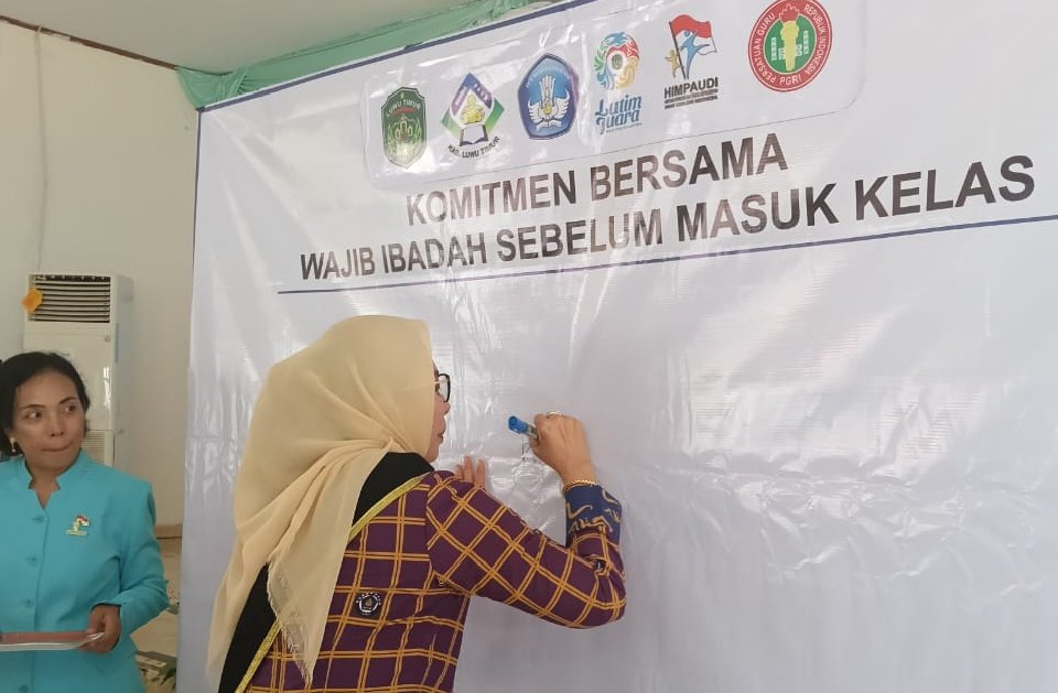 Dalam kegiatan penandatanganan komitmen bersama yang digelar bersama Kepala Dinas Pendidikan Muh Syukri, para kepala sekolah, guru, dan undangan lainnya, Ani Nurbani menegaskan pentingnya sinergi semua pihak untuk menjadikan ibadah sebagai bagian dari rutinitas pendidikan di sekolah.