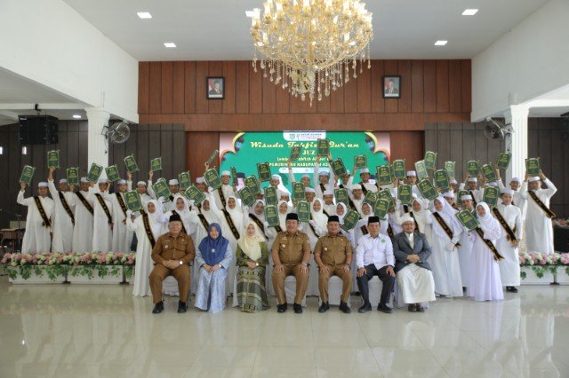 ASAHAN, TEKAPE.co – Bupati Asahan, Taufik Zainal Abidin Siregar S.Sos, M.Si mewisuda 48 orang santri Lembaga Tahfizh Al-Qur’an Pemerintah Kabupaten Asahan di pendopo rumah dinas bupati setempat, Senin (23/06/2025).