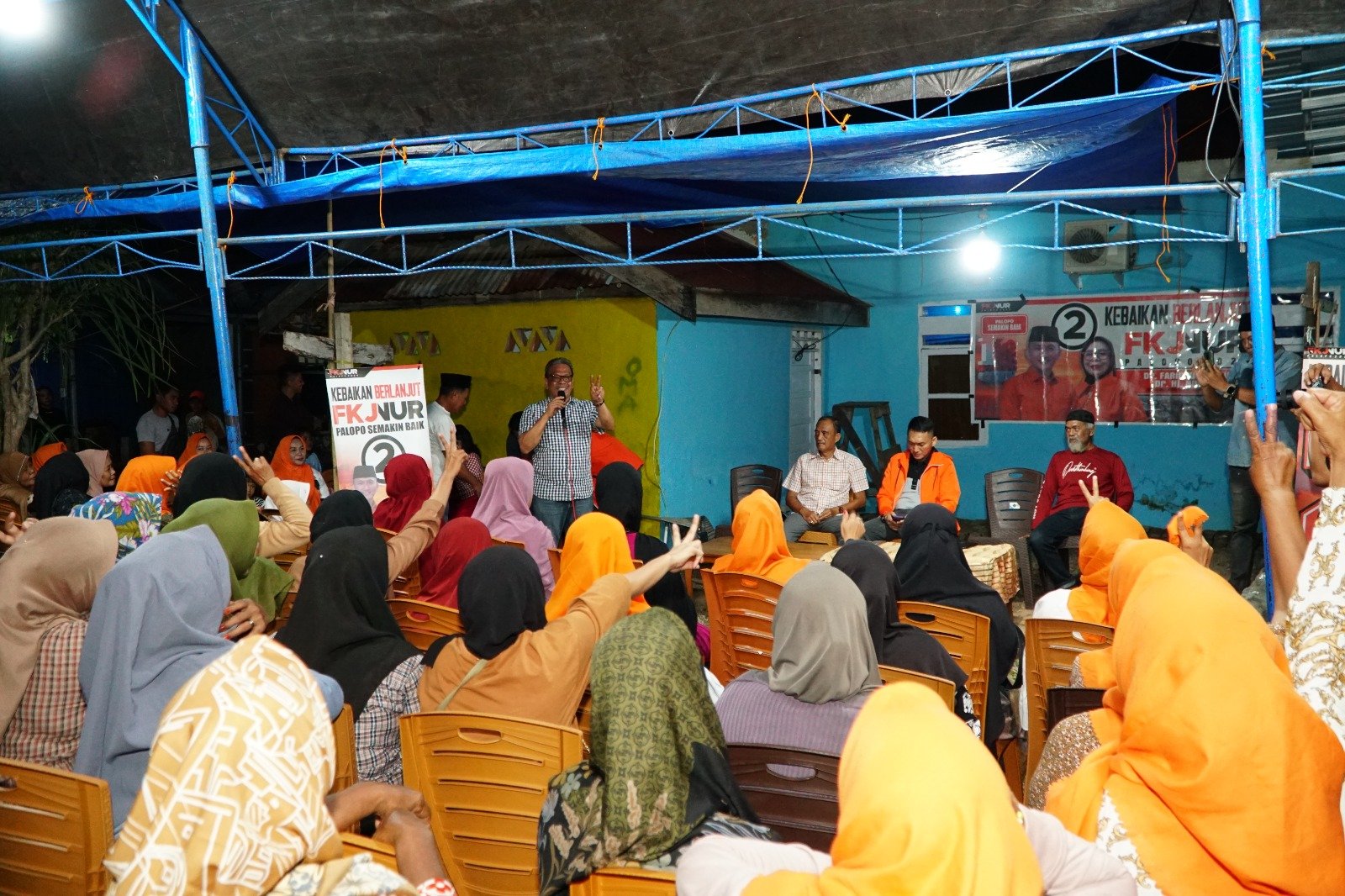 Saat menghadiri silaturahmi FKJ-Nur dengan masyarakat Kelurahan Surutanga, Senin malam, 7 Oktober, Mas’ud Masse di hadapan ratusan warga Surutanga secara terbuka menyatakan mendukung FKJ-Nur di Pilwali Palopo 2024.