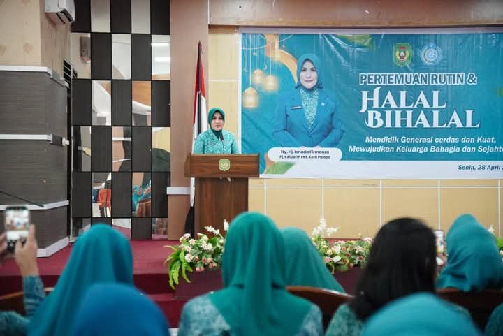 PALOPO, TEKAPE.co – Tim Penggerak Pemberdayaan dan Kesejahteraan Keluarga (TP PKK) Kota Palopo menggelar pertemuan rutin yang dirangkaikan dengan kegiatan Halal Bi Halal 1446 Hijriah di Auditorium Saokotae, Senin (28/4/2025).